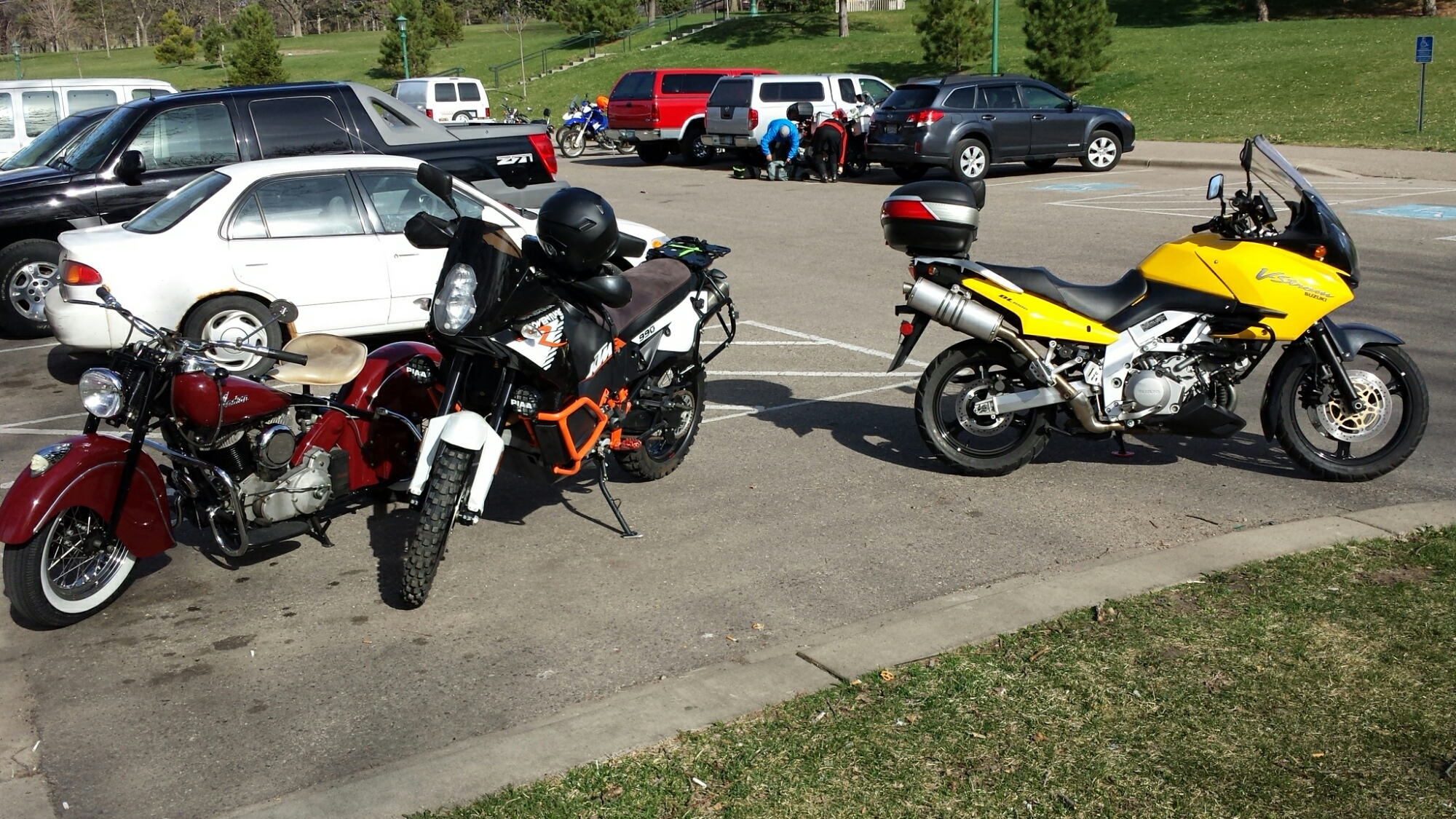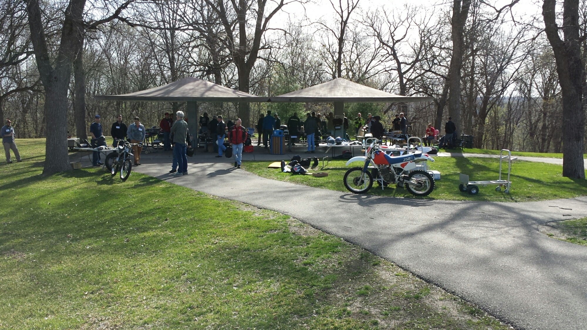 Thank you everyone for making the swap meet a success this year.  It was the best turnout we have had, with more sellers and more buyers than years past.  The weather was beautiful as well, which I think encouraged more ride-ins this year.  Many great deals on parts and gear were too be found.  Four bikes were for sale, which was again more than we have had before and one sold. It was great to see people walking away with arms full of stuff and smiles on their faces.  More than one seller commented to me that it didn’t really matter how much they sold, but it was the camaraderie and social time that made it worth their while.  I couldn’t agree more